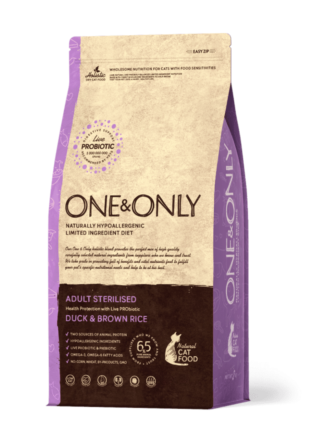 ONE&ONLY Adult Sterilised Duck & Brown Rice 400g G and p oall e r g e nn and I am f or m u l and with a low fat content and high protein content helps maintain weight and muscle mass in sterilized and elderly pets in optimal shape. M I am with about ducks rich in protein, amino acids and vitamins. Promotes muscle development, strengthens the immune system and maintains an energy balance. Normalizes metabolism and promotes the health of the eyes, skin and coat. M and ll and and drd well willow x p ro bi about t and to about in daily support bowel microflora, improve digestion, nutrient absorption and prevent allergies. 65% of meat in Living probiotics Monoprotein formula Hypoallergenic ingredients 37% protein, 11% fat N e with d er well and t: corn, wheat, beets, peas, offal, eggs, chicken, chicken fat, salt, sugar, dyes, flavors, soybeans and GMOs. Short composition ingredients reduces the risk of nutritional intolerance and allergies, providing digestive and immune health. A rich meat composition will satisfy the natural need for the necessary animal proteins. Ingredients: Duck meat ( hydrogenated duck meat, fresh duck meat ), brown rice, oatmeal, tug meat, dried sweet potato, flax seed, fresh salmon oil, chicory extract, turkey fat, MOS, plant fibers, empty seeds, Yukka Shidiger, cranberry extract, blueberry extract, brocc extract, broccoli extract, Boswellia extract, nettle extract. Saved by rosemary and a mixture of natural tocoferols ( source of natural vitamin E ). Metabolic energy: 3.850 kcal / kg Analysis % Vitamins ( mg / kg ) Micronutrients ( mg / kg ) Amino acids ( mg / kg ) E. colloquial stabilizers Protein: 37.0 Fat: 11.0 Ash: 7.0 Cellular: 4.0 Humidity: 6.0 Calcium ( Ca ): 1.3 Phosphorus ( P ): 1.0 Magnesium: 0.9 Omega-6: 0.8 Omega-3: 2.0 Vitamin A ( ME / kg ): 20.000 Vitamin D3 ( ME / kg ): 1.750 Vitamin E ( a-copherol ): 200 Iron ( E1 ): 70.0 Copper ( E4 ): 10.0 Zinc ( E6 ): 100.0 Manganese ( E5 ): 40.0 Yod ( E2 ): 1.5 Selenium ( E8 ): 0.2 Taurin: 1800 Enterococcus faecium ( KOE / kg. ): 10 9 Advantages: + 65% duck meat and turkey meat + One source of animal lamb + Does not contain vegetable proteins + Minimum Ingredients – Maximum Use + Only fresh and degi drilled meat + Omega fatty acid balance 6 & Omega 3 + Hypoallergenic ingredients + Coastal ingredient preparation mode + Maintaining the required pH acidity + Low ash content in large quantities of meat + Living probiotics 1,000,000,000 KOE / kg R ek about m en d about in and n n and I am d n e in n and I am n or m and to about r m l e n and I am in g r and m m and x Age ( month ) 1.5-3 4-5 6-8 Gram per day 20-45 55-65 75-95